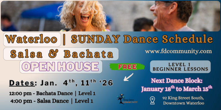 Ready to be part of Waterloo’s newest dance story? Join us Sundays from 12-3pm and experience why Flying Dance Community has been the region’s trusted choice for over two decades.